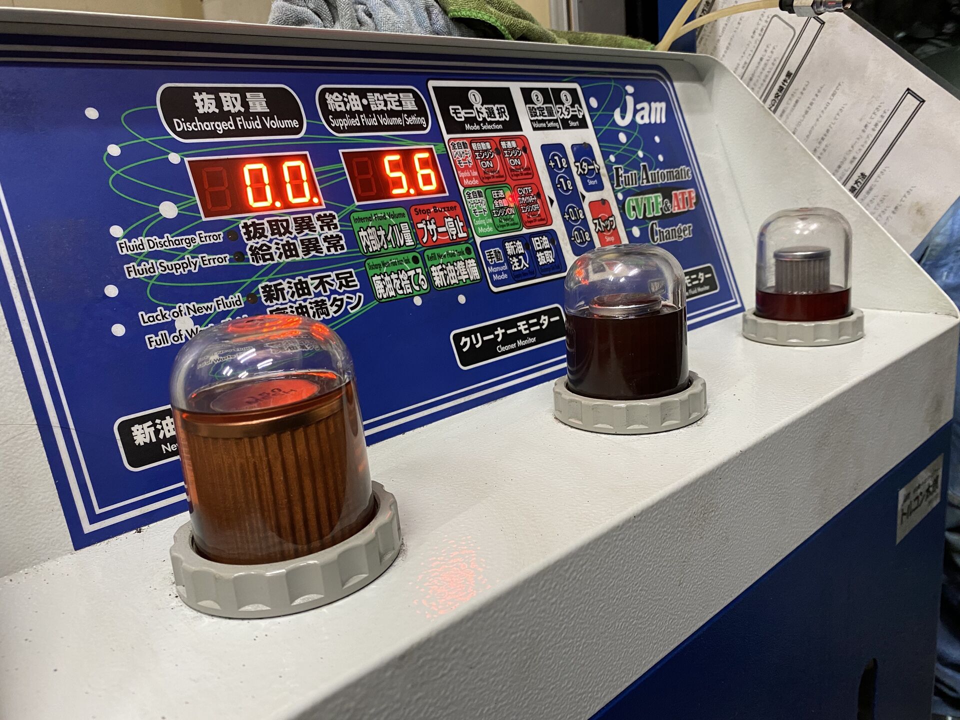 アイドリング交換後は自動的にミッション洗浄に切り替わり、内部の汚れを回収。